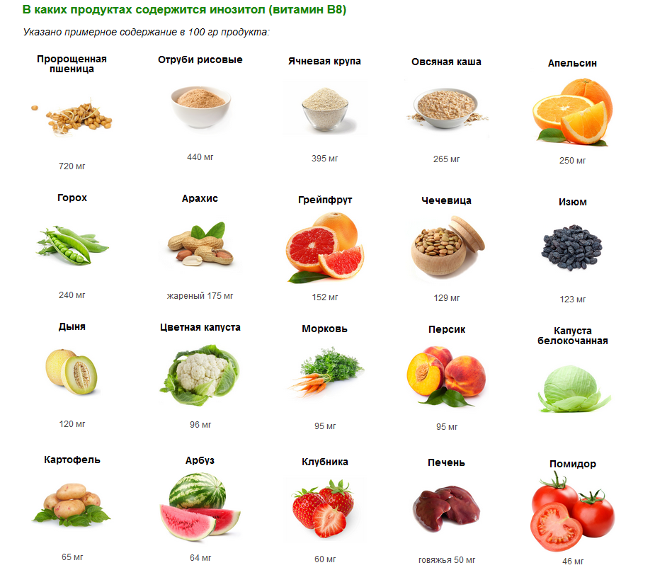 Источники: желток куриных яиц, печень, арахис, огурцы, цветная капуста, морковь, томаты, шпинат, растительное масло, дрожжи.