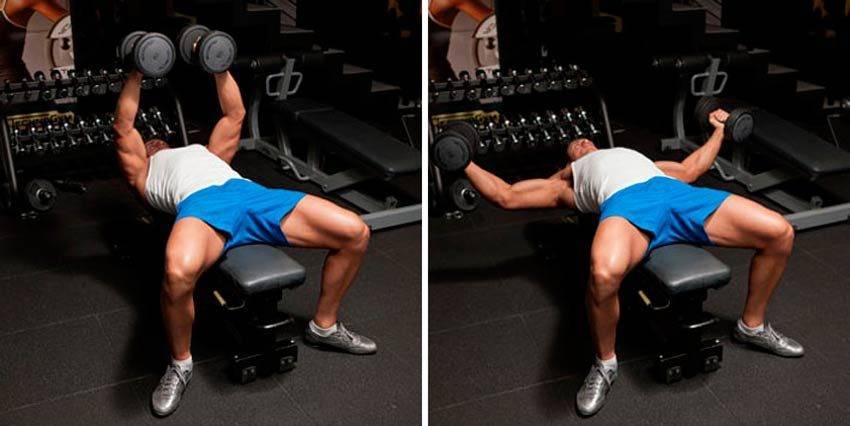 Например, жим под углом 30 градусов в первую тренировку, после него разводка и жим гантелей под 45 градусов.