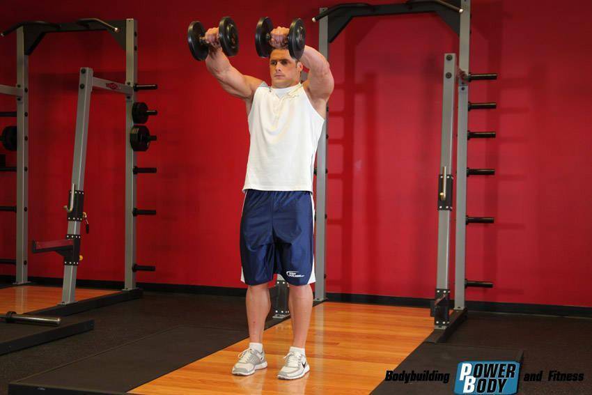 Как уже упоминалось, жим гантелей стоя имеет массу вариаций, которые условно можно разделить на три основные группы: