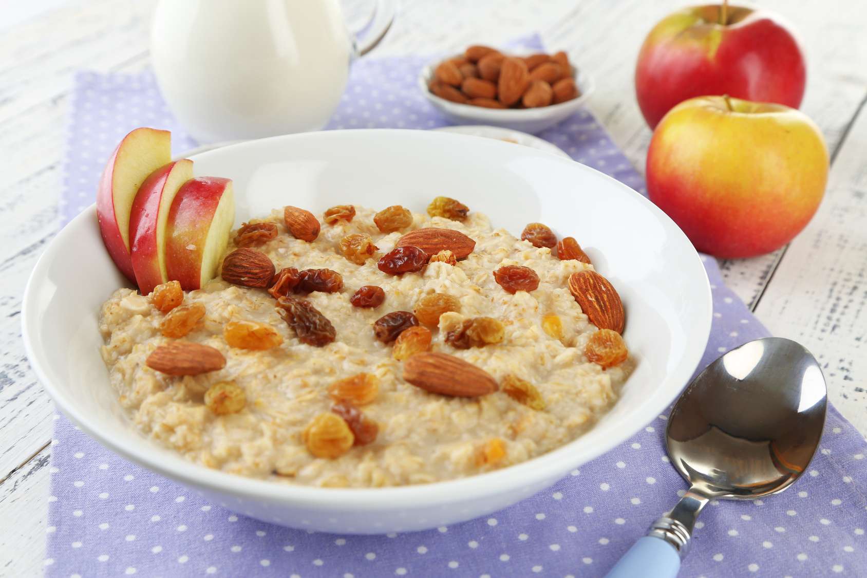 3 ст.л. овсянки залейте водой, добавьте немного изюма и варите 10-15 минут. Затем добавьте ¼ стакана обезжиренного молока. Доведите до кипения и выключите, оставив настояться еще минут на 15.