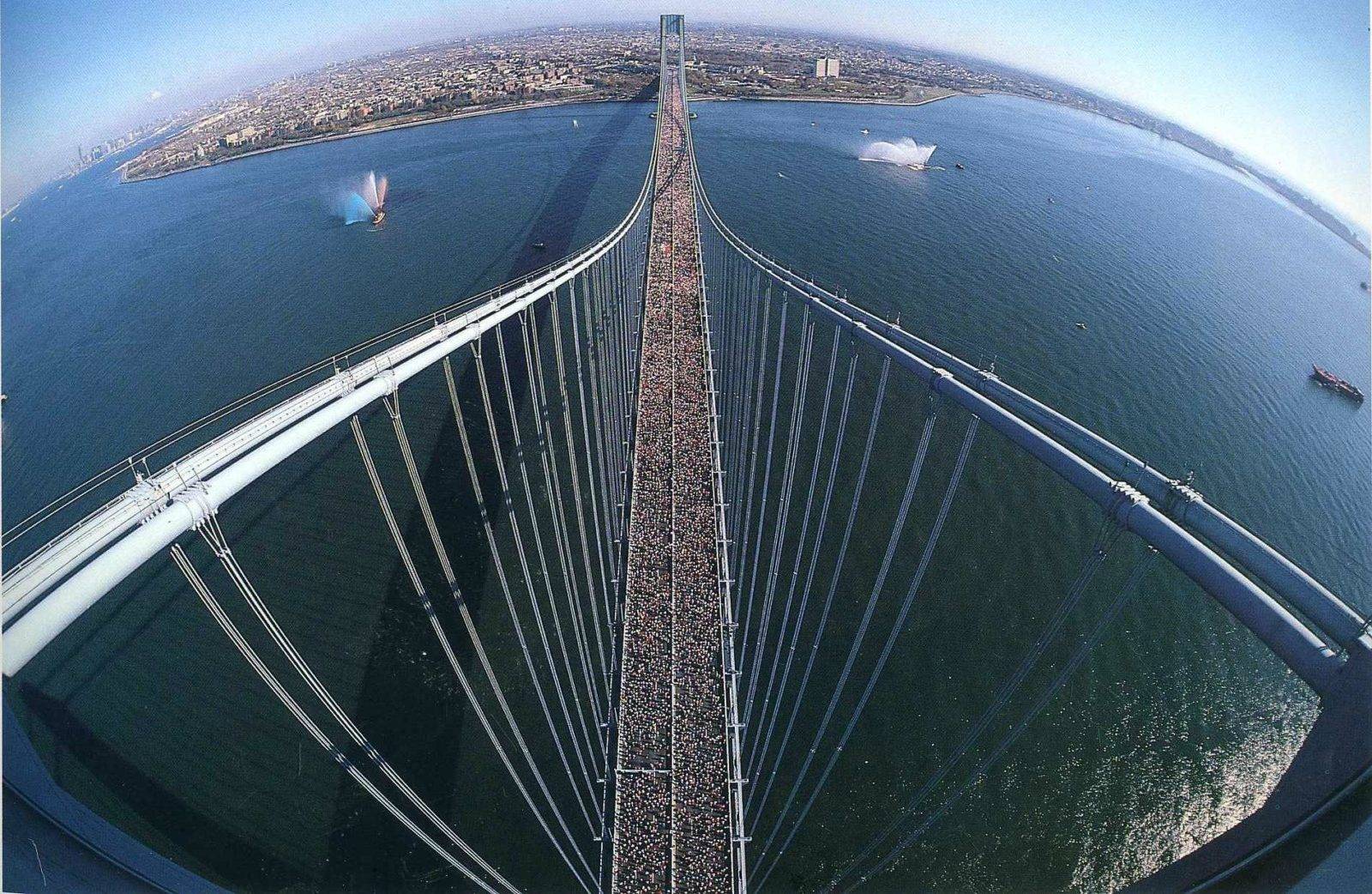 Старт Нью-Йоркского марафона. На этом мосту стоит 50 тысяч бегунов-любителей. Кто бегал этот марафон, рассказывают, что эмоции от старта остаются на всю жизнь