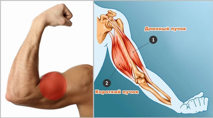 Бицепс – очень маленькая мышечная группа. Эта двуглавая мышца начинается под дельтой и продолжается ниже лопатки.