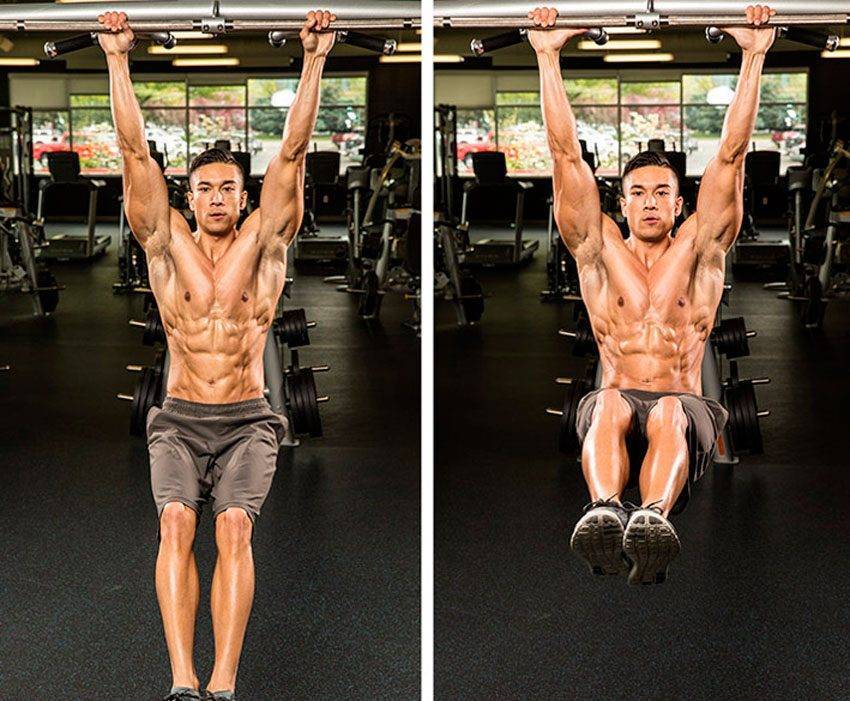 - Не пренебрегайте подкручиванием тазовой области в верхней части движения. Стандартный подъем ног в висе на перекладине выполняется преимущественным усилием подвздошно-поясничных мышц и в меньшей степени задействует мышцы брюшного пресса.
