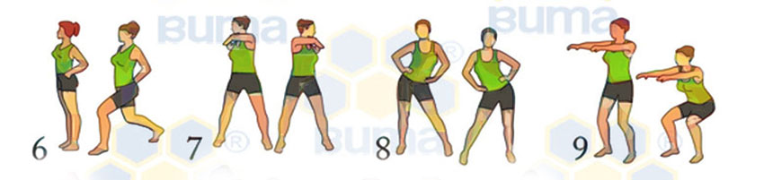 9. Приседание (5-7 раз для начинающих, затем 15-20);