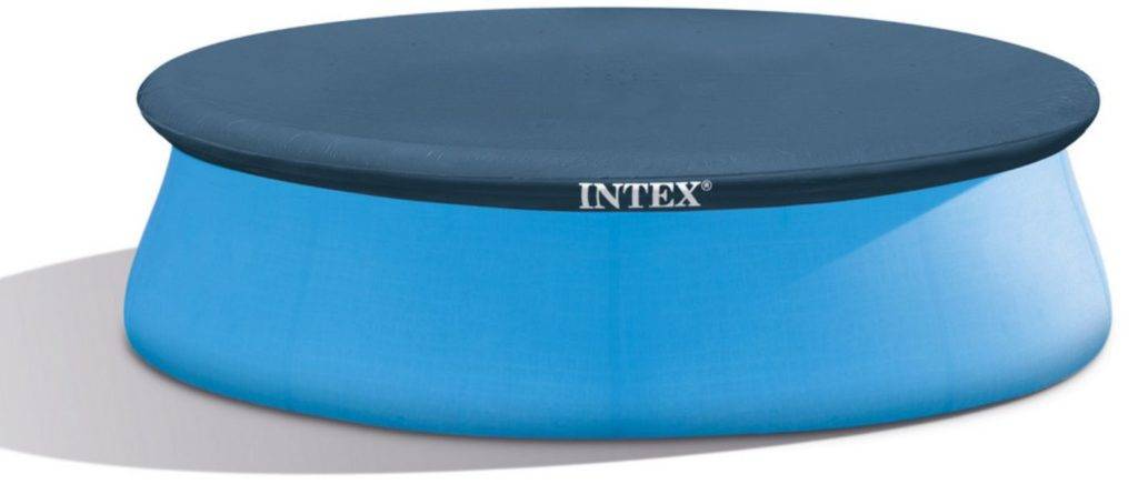 - Intex. Выпускает чехлы для круглых надувных бассейнов. Изделия обладают эффектом сохранения постоянной температуры воды, предупреждая испарение. Имеют в комплекте шнуры и сливное отверстие, что делает процесс закрытия бассейна более простым, а саму продукцию бренда более функциональной.