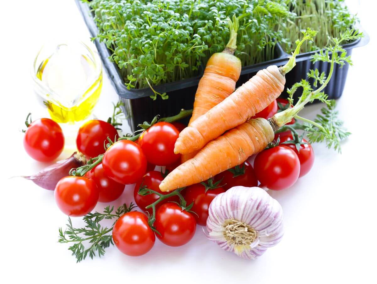 - овощи. В день нужно съедать до 1,5 кг сырых овощей. Желательно отдавать предпочтение огурцам, помидорам, капусте разных сортов. Можно включать в рацион зелень.