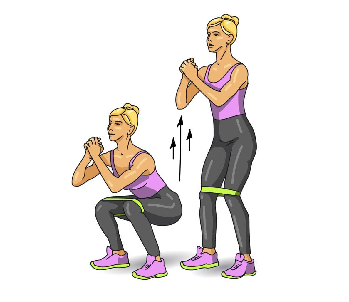 Встаньте ровно, ноги на ширине плеч, носки слегка смотрят в стороны. Напрягите пресс. На выдохе медленно опуститесь вниз — бедра должны быть параллельны полу. Задержитесь в нижней точке, напрягая ягодицы. Затем взрывным движением вернитесь в вертикальное положение.