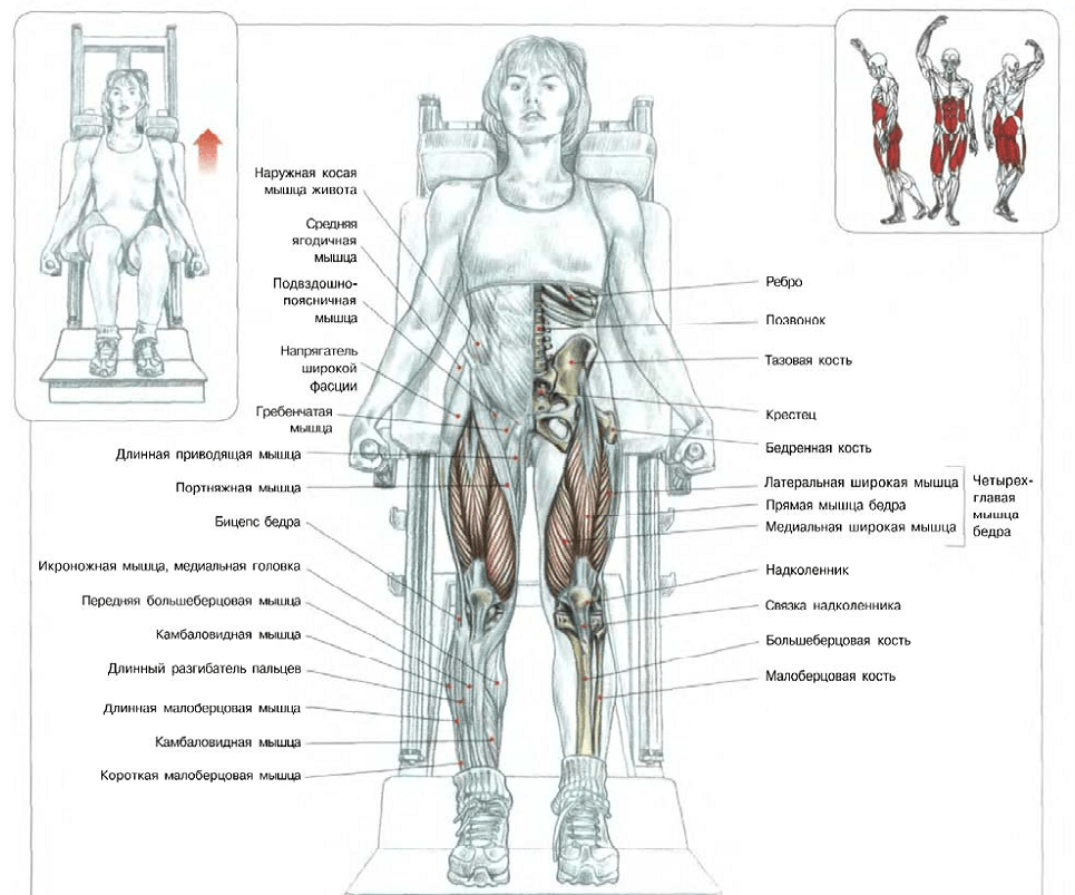 Кстати, дополнительно к квадрицепсу работают мышцы пресса. Лежа делать тоже можно, но нагрузка в этом случае совсем незначительная.