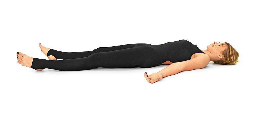 Для практики этой асаны вам следует лечь на пол и постараться полностью расслабить все части тела и снять напряжение как физическое, так и психическое.