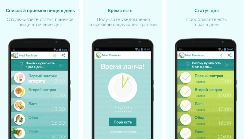 Важно питаться не только правильно, но и регулярно (привет, кэп!). Если промежутки между приемами еды слишком велики, вы рискуете сорваться и съесть намного больше запланированного, а это чревато лишними сантиметрами на талии. Чтобы этого не случилось, установите приложение «Напоминание о питании» (Meal Reminder) и больше не пропускайте приемы пищи