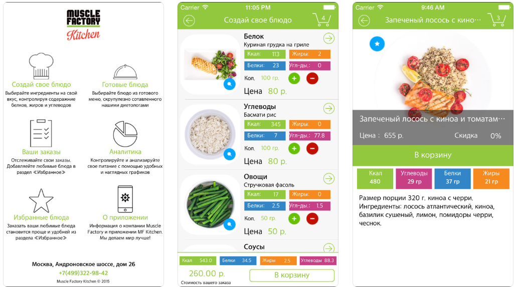 Если вы не хотите мучительно придумывать новые полезные блюда, за вас это сделают специально обученные люди — диетологи. В MF Kitchen такие блюда не просто разрабатывают, а готовят и доставляют прямо к вам домой. У сервиса есть собственное приложение, в котором можно заказать здоровое питание. Это могут быть как блюда из постоянного меню сервиса, так и собранные вами прямо в конструкторе. Для каждого добавленного ингредиента приложение показывает КБЖ, а в конце — итоговую калорийность и питательную ценность блюда.