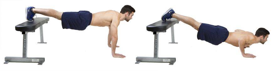 Отжимания с подъемом ноги. Поднимите одну от пола. Когда вы держите ее, ваше бедро и ягодица будут находиться в напряжении. Меняйте ноги в середине подхода, или через отжимание.