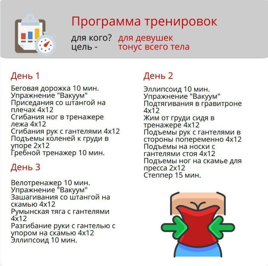 План тренировок в тренажёрном зале для похудения разрабатывается с учётом индивидуальных особенностей организма и степени подготовки спортсменки. Чрезмерные нагрузки вместо пользы и сжигания излишних жировых накоплений навредят здоровью.