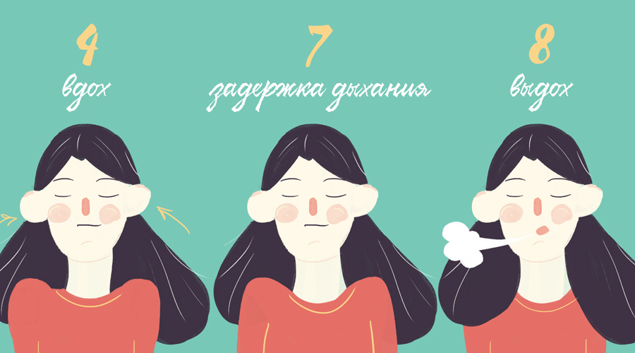 Еще одна дыхательная техника при тревоге 4-7-8. Полезно для улучшения сна. Полный выдох через рот. Затем медленный вдох через нос на 4 счета. Задерживаем дыхание на 7 счетов. Далее выдох полностью через рот на 8 счетов. Делаем минимум три подхода.