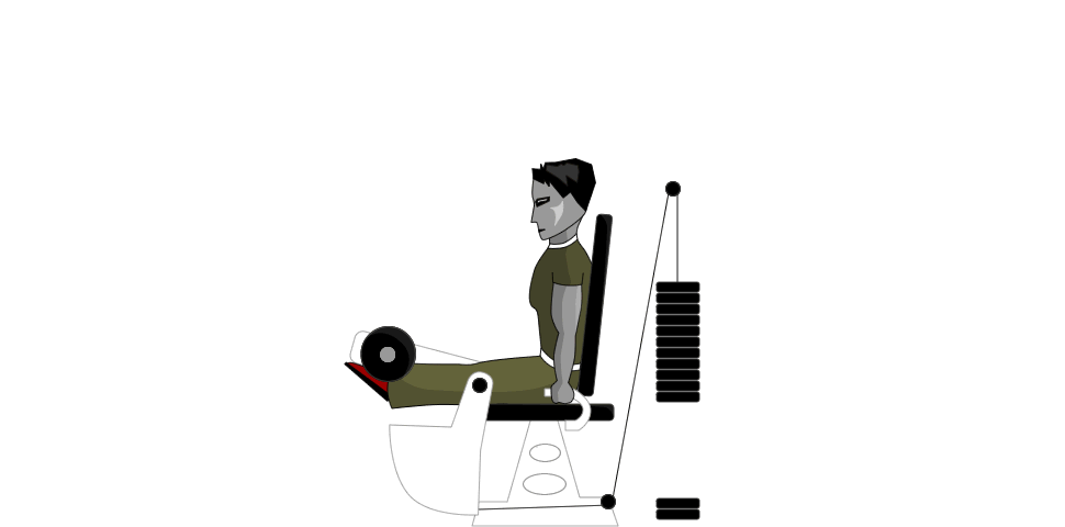 - Для выполнения этого упражнения вам понадобится тренажер для разгибания ног. Сначала установите ваш вес нагрузки и сядьте в тренажер, поместив ноги под валик рычага тренажера (ноги направлены вперед) и взявшись руками за боковые рукоятки по бокам сидения. Это будет вашей исходной позицией.
