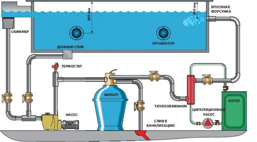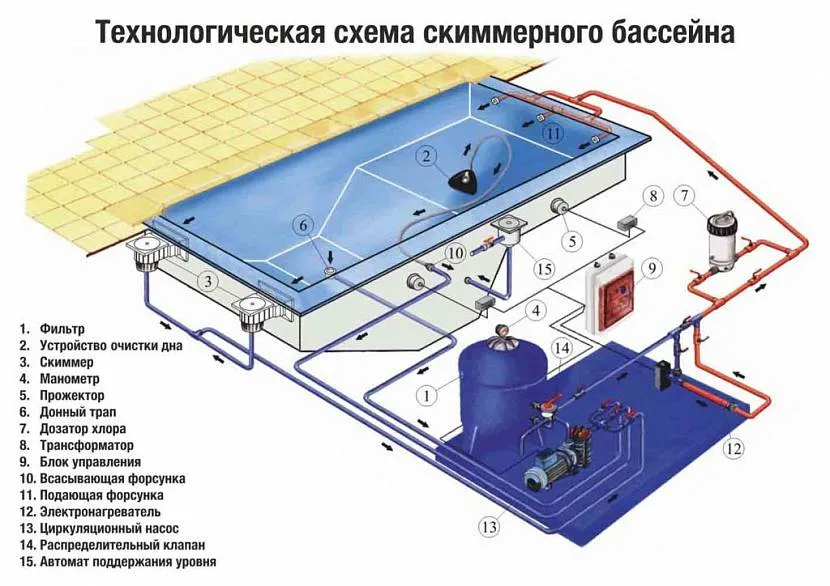 Схема устройства системы водоснабжения в бассейне Источник project-pool.com.ua