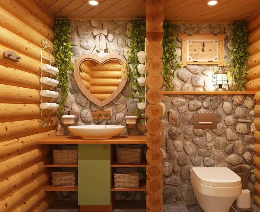 Оборудованный санузел в бане из срубаИсточник parki48.ru