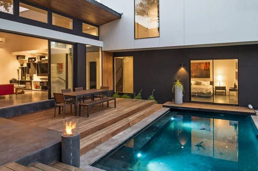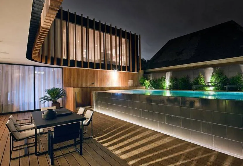 Чтобы получить уютное место для релакса в воде, нужно найти хорошего подрядчика Источник houzz.es Последний совет имеет очень важное значение. Если взять дешевую бригаду и дешевые материалы, то можно попасть на неквалифицированный труд и конструкция повредится уже через пару лет