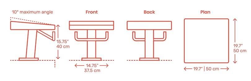 Планирование торцевых вертикальных чертежей стартового блока для плавания с указанием размеров по высоте и ширине.