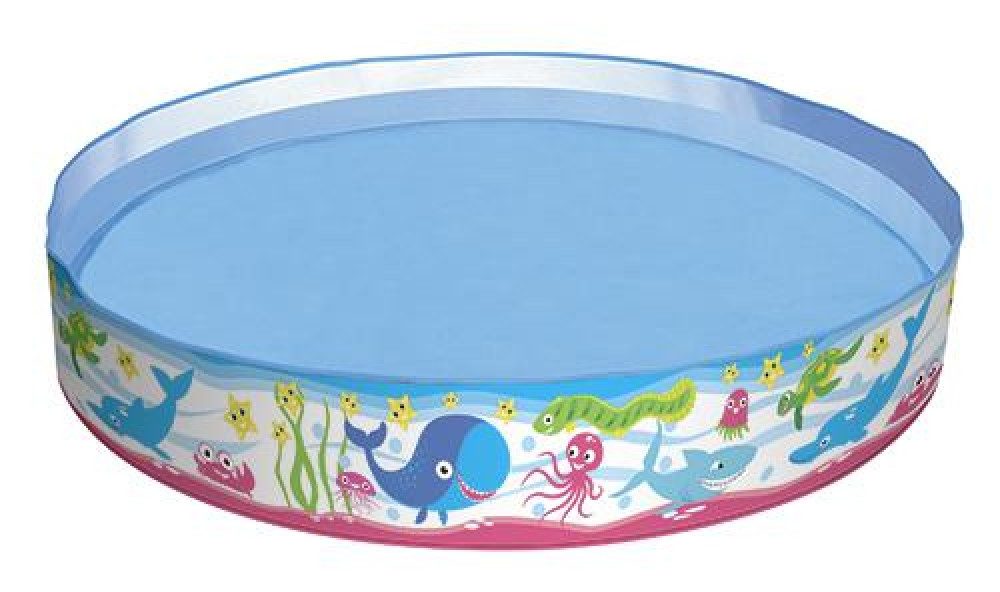 Детский каркасный лягушатник открытого типа и круглой формы. Рекомендуемый возраст ребенка для купания – от 2 лет. Имеет прозрачный цвет, серия изделия Fill N Fun Pool.