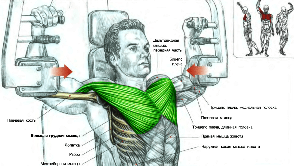 Основные рабочие мышцы — верхняя часть груди.