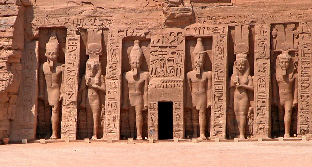 Храмы Абу-Симбела – это яркие представители древнеегипетской архитектуры, построенные в период правления Рамсеса II. Они расположены в 285 км от Асуана, на берегу Нила. Храмы вырублены в скале Абу-Симбел на западном берегу реки, откуда и получили свое название. Большой храм был воздвигнут в честь Рамсеса II и богов Ра, Амона и Птаха, а малый посвящен жене фараона Нефертари Меренмут и богине Хатхор.