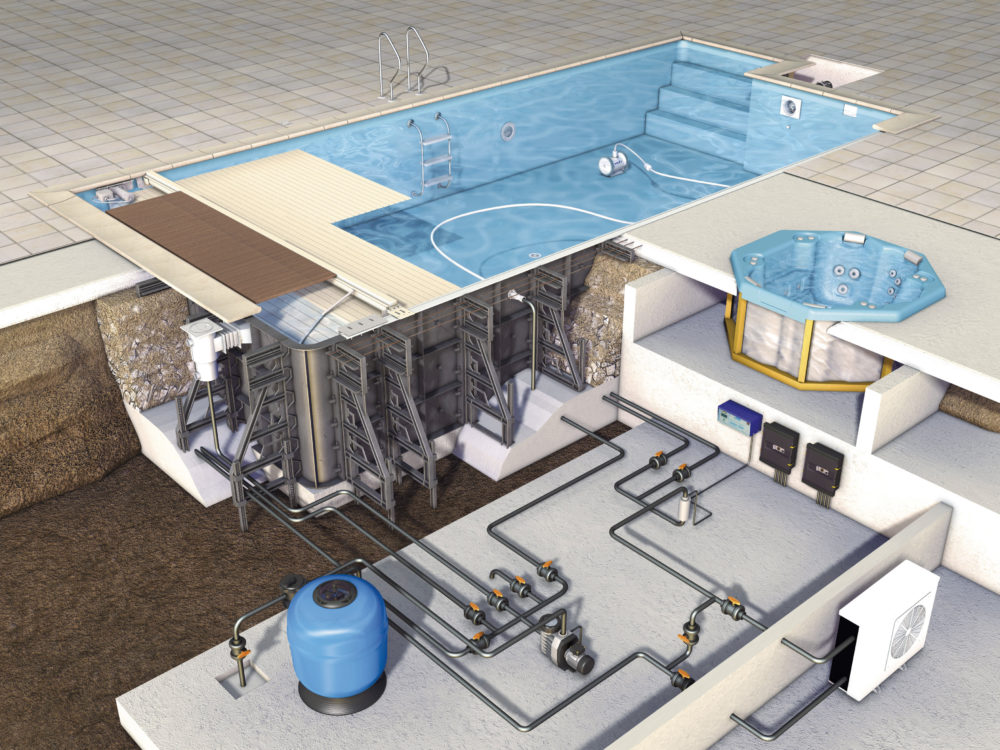Оборудование для бассейна можно разделить на две категории: основное и дополнительное. К основному относят: системы фильтрации, нагрева воды и т. д. Дополнительное оборудование играет второстепенную роль и больше относится к дизайну бассейна.
