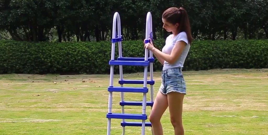 Приспособление предназначено для безопасной эксплуатации бассейна. Ступеньки расположены по обеим сторонам. Конструкция не фиксируется к самому резервуару.