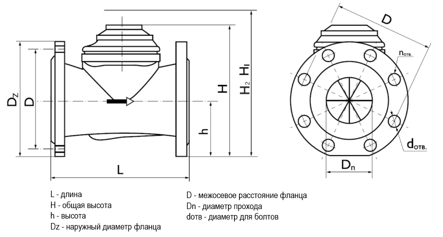 Схема турбинного счетчика ВСХНд ДУ 40-250 мм