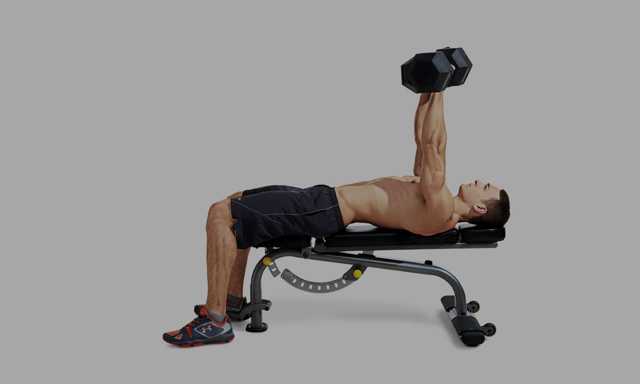 - Жим гантелей в горизонтальном положении: 3 подхода по 10 повторений.