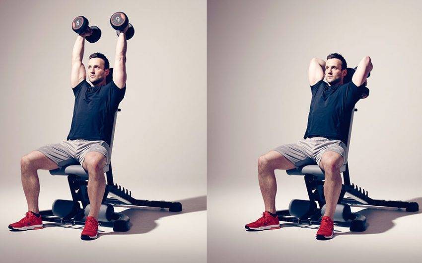 Лучше этого упражнения с гантелями нет ни одного. Его можно считать самым эффективным упражнением среди других. Во-первых, во время выполнения спортсмен фиксирует положение позвоночника упором о спинку скамьи. Конечно, можно выполнять упражнение сидя без упора, но лучшим вариантом является тот, при котором атлет находится в положении под углом 45 градусов. Этого положения легко добиться, используя скамью с возможностью изменения наклона спинки. Ноги при таком варианте выполнения могут быть поставлены на возвышенность так, чтобы колени располагались примерно на уровне груди.