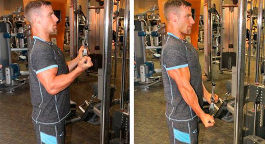 • Не бойтесь локти распрямлять полностью, здесь в отличии от гантелей или штанги, нагрузка одинакова в любой точки упражнения.