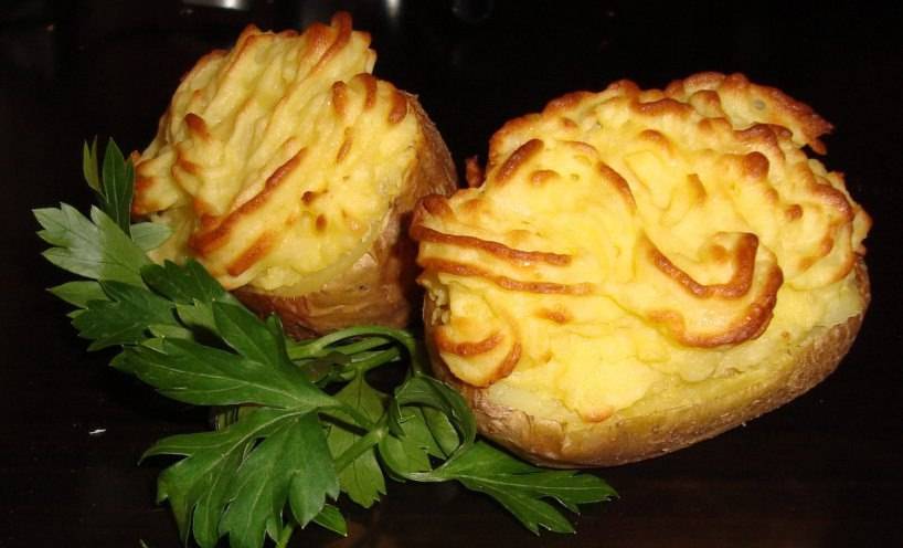 Поставьте форму для запекания в заранее разогретую духовку, лучше ближе к низу духовки. По краям формы выложите картофель, завернутый в фольгу. Запекайте около получаса.