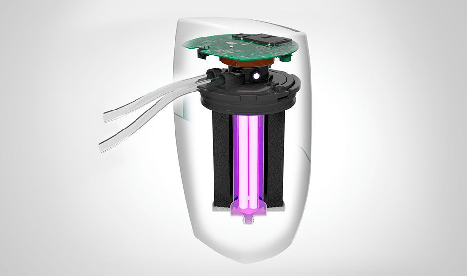 После открытия крана подаётся сигнал сенсору, только после чего включается ультрафиолетовая лампа, предотвращая потерю лишней электроэнергии и нагревание воды. Из-за чего вода остаётся холодной.