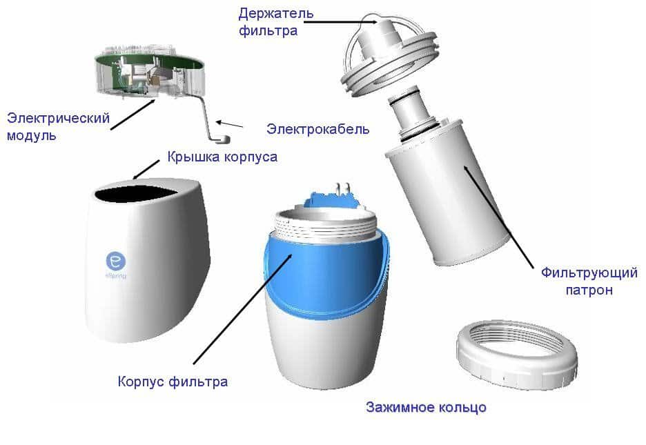 Запатентованная технология eSpring использует несколько этапов очистки. Жидкость проходит через следующие элементы: