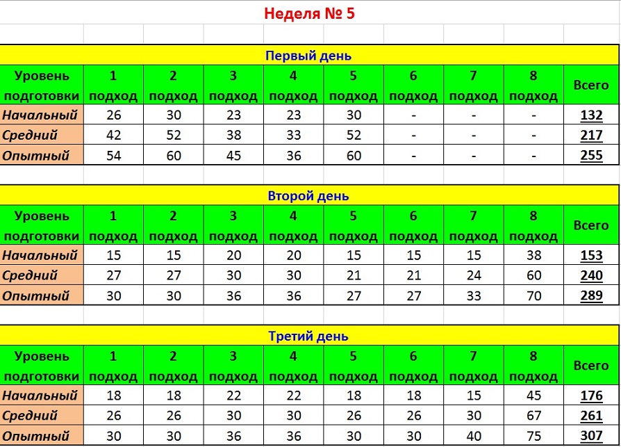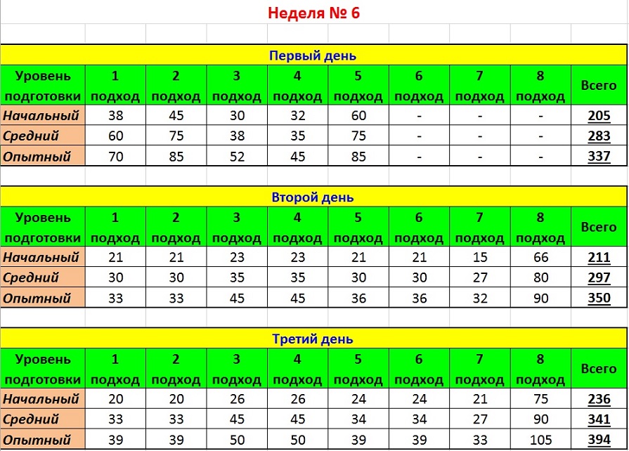 - НАЧАЛЬНЫЙ – если смогли подняться до 15 повторений