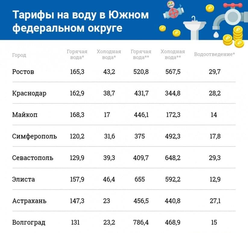 Помимо этого, следует учитывать, что на вопрос, сколько стоит куб горячей и холодной воды, влияет и то, какая ресурсоснабжающая компания предоставляет услуги для населения. Водоканал или другую организацию указывают в квитанции за водопотребление. Правительство разрешает повышать цену на коммунальные расходы только в рамках инфляционной ситуации в стране.