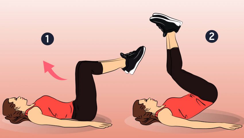 Лягте на спину, разведите руки в стороны ладонями вниз, ноги поднимите вертикально вверх. Опустите ноги влево как можно ниже, а затем вернитесь в центр и повторите в правую сторону. Делайте поворот от таза, а не от поясницы, для этого не отрывайте ее от пола и держите пресс в постоянном напряжении. Упражнение глубоко прокачивает не только внешние, но и глубокие брюшные мышцы.