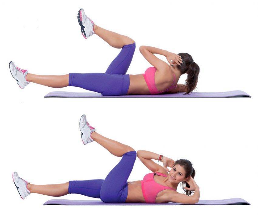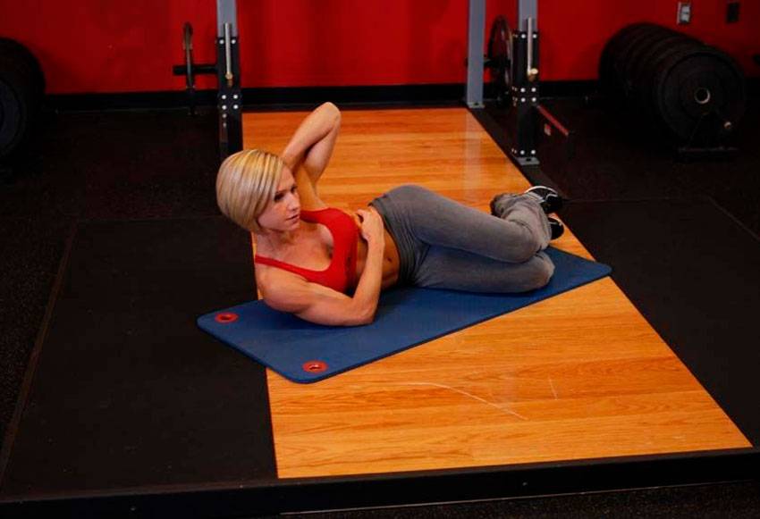 Фото скручиваний лежа на полу помогут вам лучше понять их правильную технику.