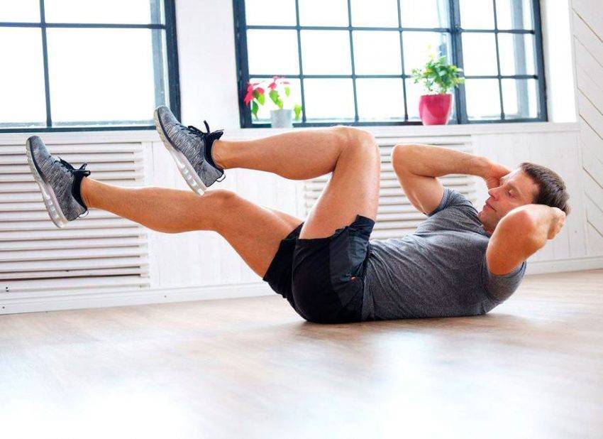Классическое упражнение — самые распространенные скручивания на пресс выполняют на полу. Основная нагрузка здесь ляжет на прямые мышцы живота и на его верхнюю часть. При этом поясница практически не компенсирует мышечное напряжение.