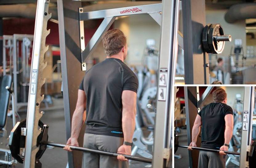 - При выполнении шрагов на машине Смита не рекомендуется подбирать слишком большой вес, так как это может нанести ущерб спине атлета.