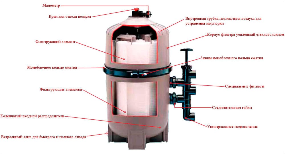 - песочные – это самые бюджетные, но и менее эффективные устройства. Загрязнения размером до 25 микрон пройдут обратно в бассейн;