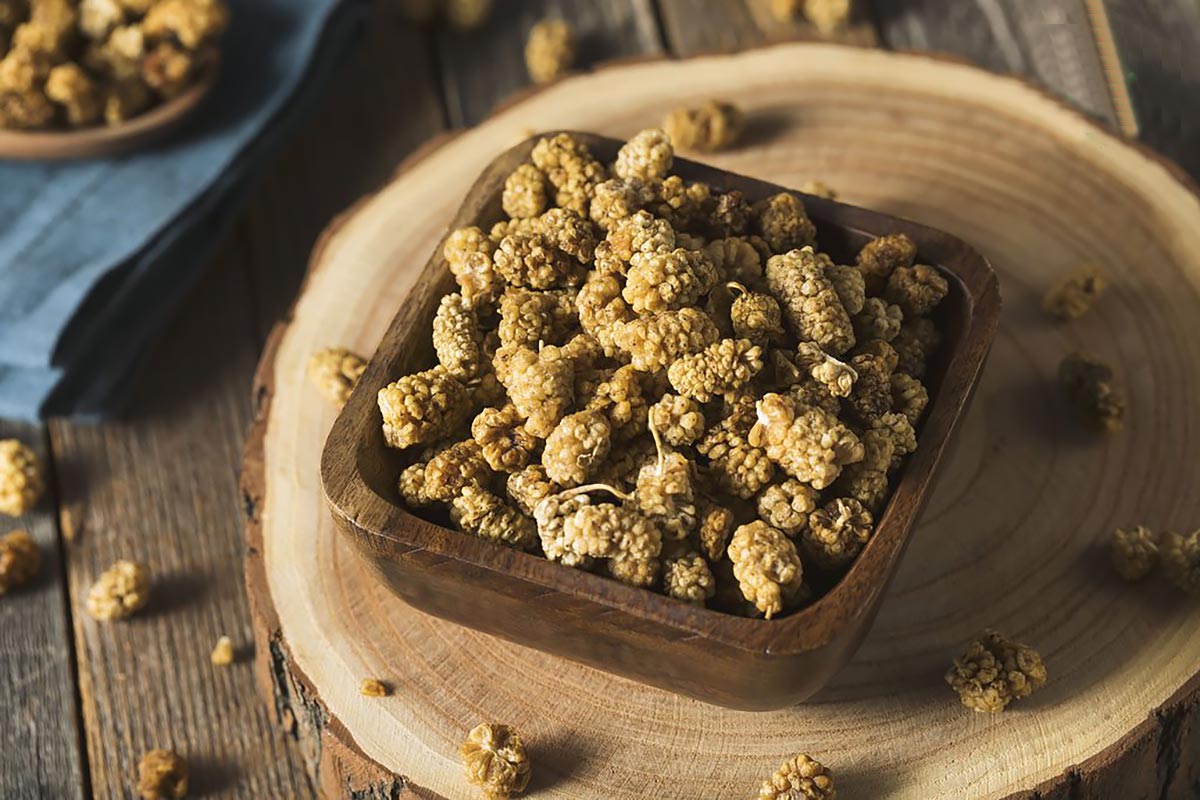 - Белая шелковица. На самом деле черная ничем не хуже, но так уж повелось, что именно эта ягода попала в список суперфудов. Ее можно купить в сушеном виде и употреблять для поднятия иммунитета. Еще она помогает похудеть и содержит вещества, которые борются с воспалительными процессами.