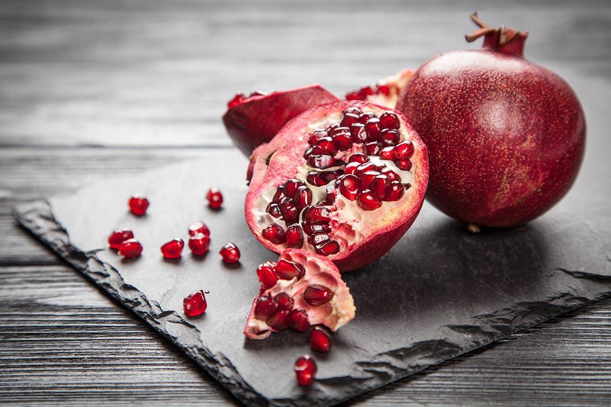 Зерна граната содержат высокое количество витамина С, а также фолиевую кислоту, магний, калий, селен и марганец. Считается, что гранат полезен для поддержания здорового уровня гемоглобина в крови — а также для улучшения пищеварения за счёт механического эффекта косточек.