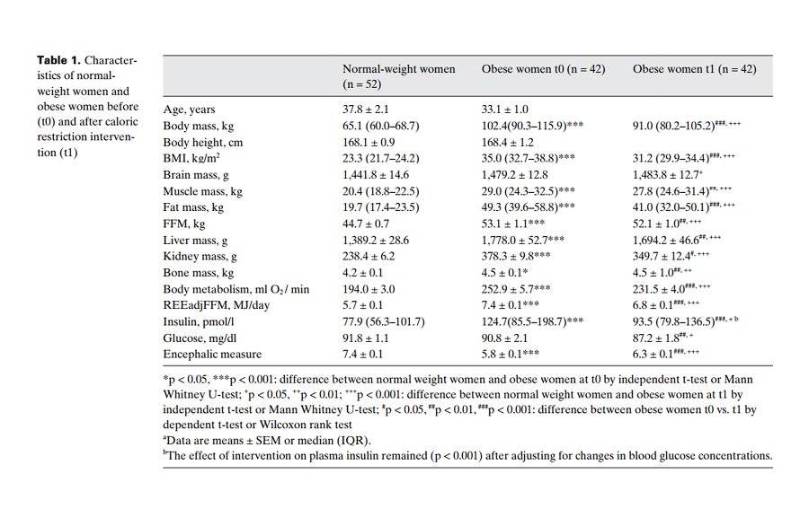 Ссылка на исследование: Peters A, Bosy-Westphal A, Kubera B, Langemann D, Goele K, Later W, Heller M, Hubold C, Müller MJ. Why doesn’t the brain lose weight, when obese people diet? Obes Facts. 2011;4(2):151-7. doi: 10.1159/000327676. Epub 2011 Apr 7.