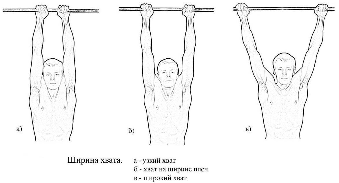 Стоит отметить, что при широкой постановке рук основная нагрузка направлена на мышцы спины, а при узкой и средней- на руки и грудь. Выбирайте различные виды хватов для «строительства» разных частей тела.