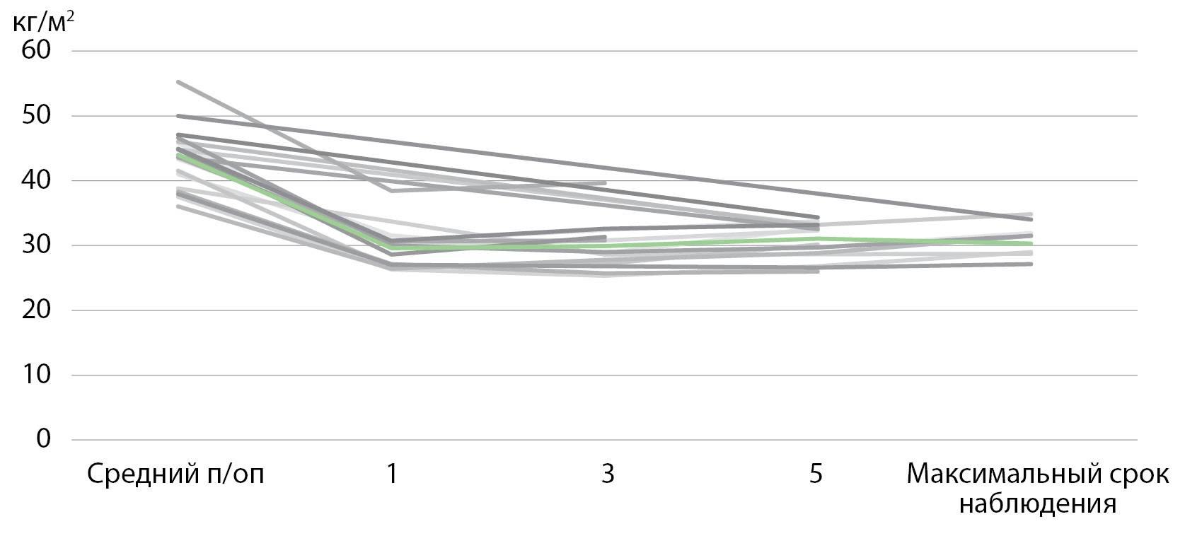 Рисунок 4. Тенденция индекса массы тела в послеоперационном периоде.Примечание. ИМТ — индекс массы тела.