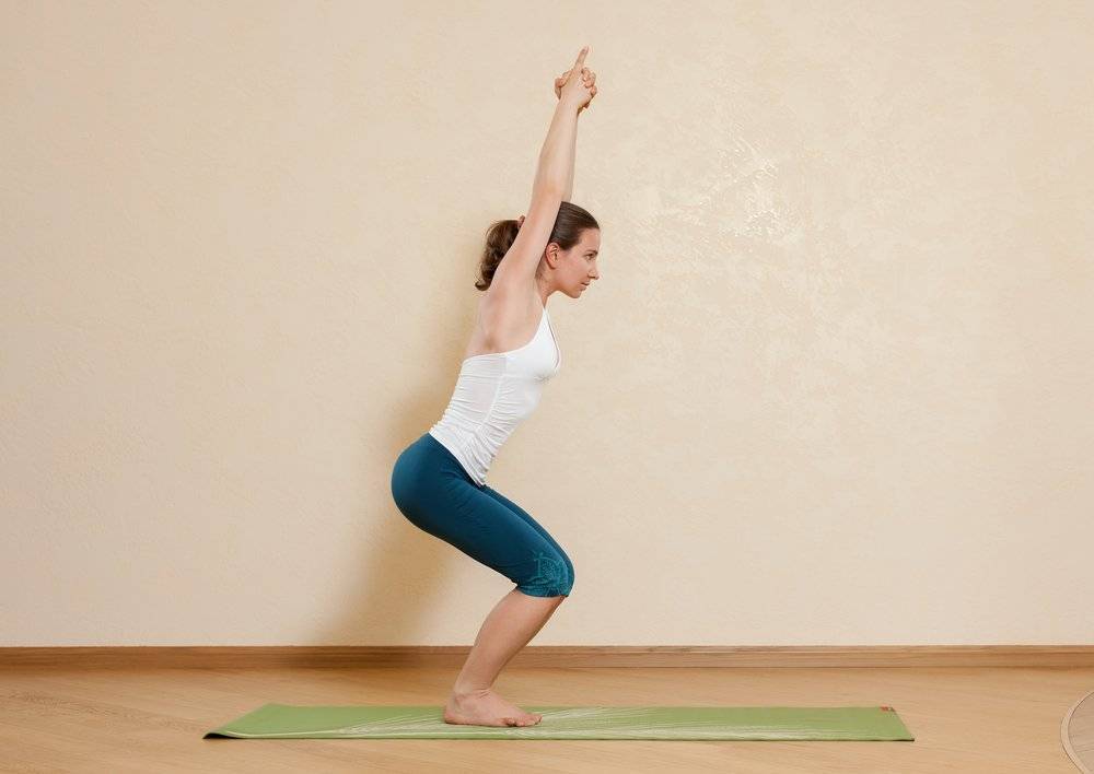 - Не расставляйте ноги широко, выполняйте на своем уровне комфорта.
