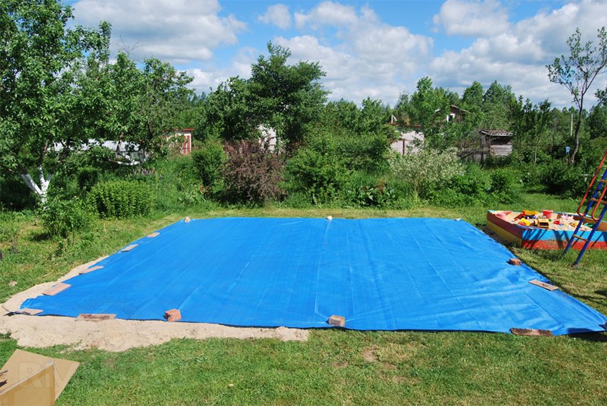 - подготавливаем участок: снимаем слой грунта в 15-20 см, засыпаем песком, плотно утрамбовываем;