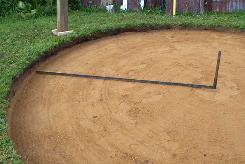 Обратите внимание, если для каркаса бассейна требуются приспособления в земле, их необходимо расположить перед заливкой нижнего слоя. Необходимо лишь немного подрезать края, чтобы перепад уровня диаметрально противоположных точек не превышал 10 мм